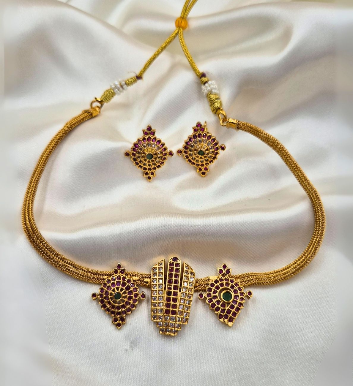 Shalini Gold Choker Women's Necklace Set with Radiant Stones – Ideal for Gifting in UAE