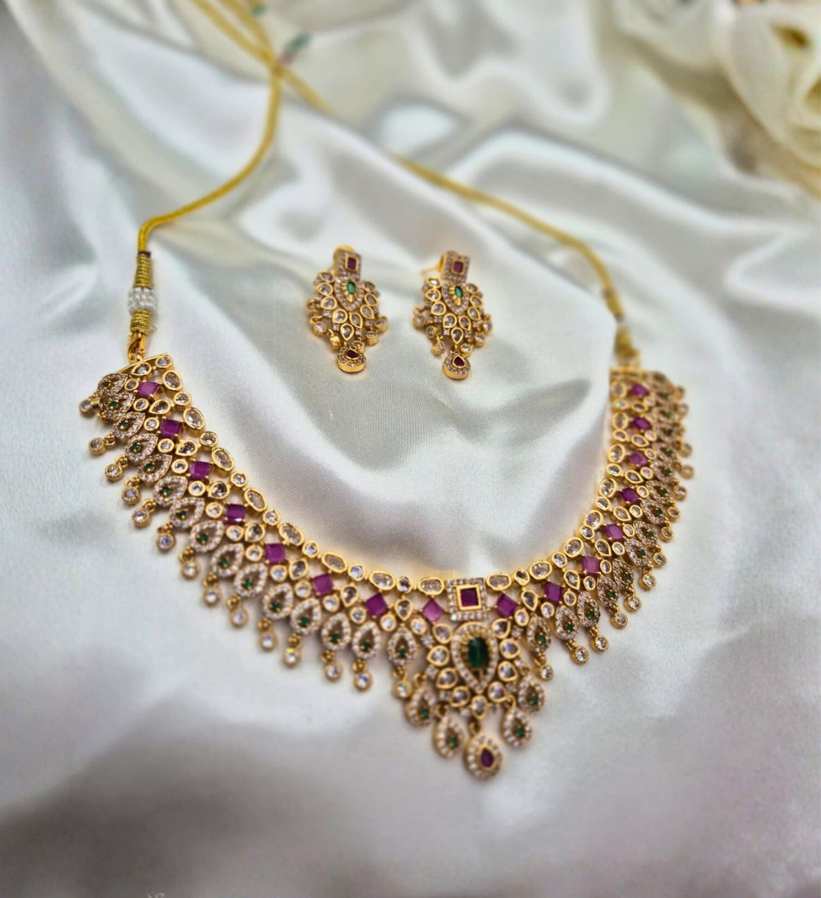 Shalini Gold Choker Women's Necklace Set with Radiant Stones – Ideal for Gifting in UAE