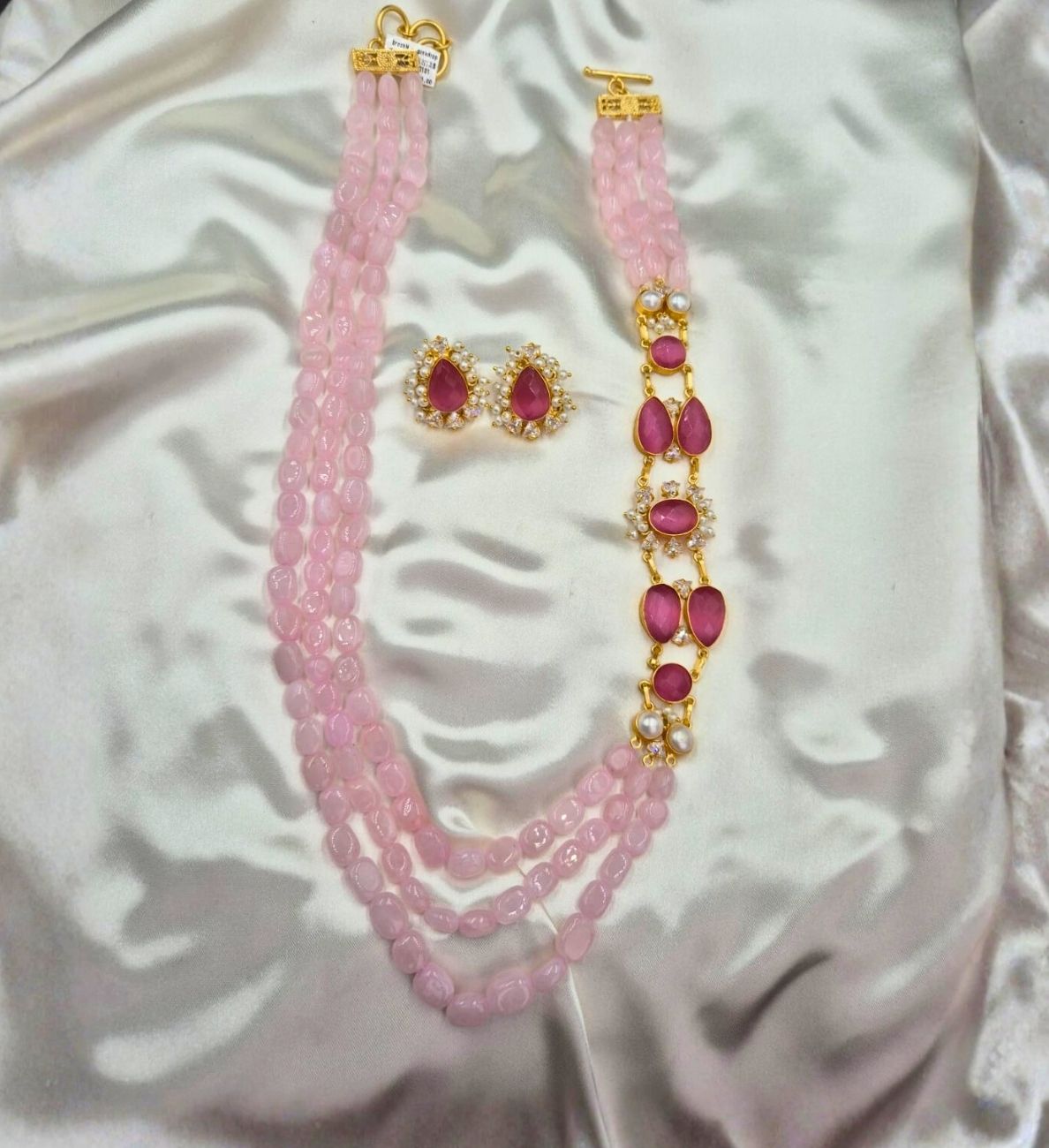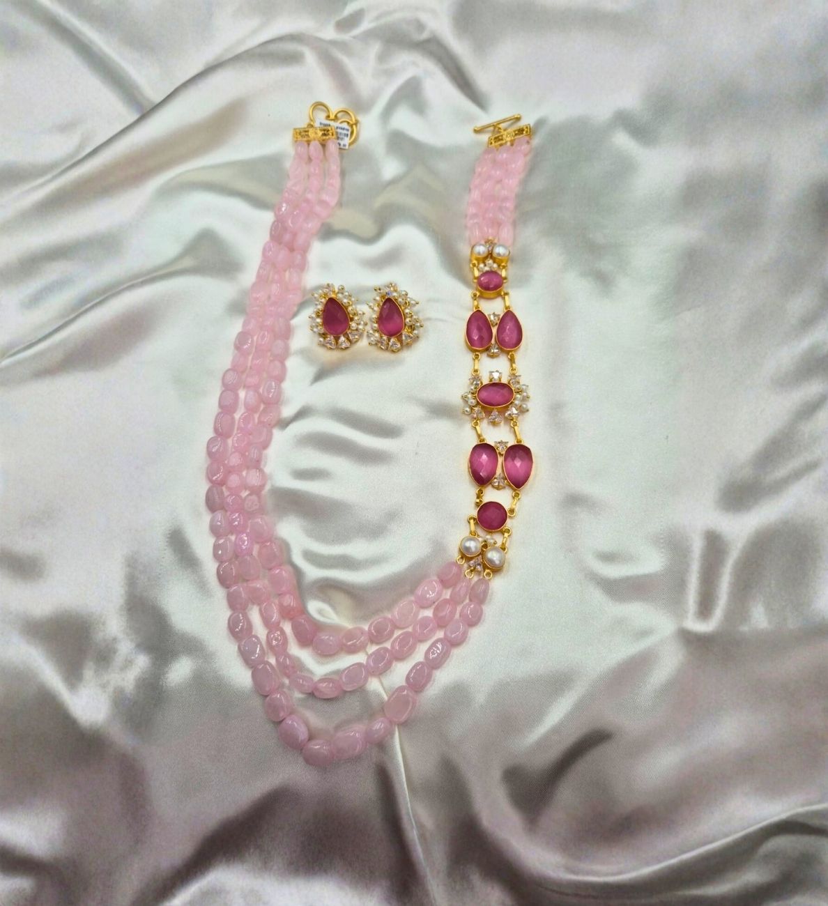 BrochN is a long and beautiful three-string beaded necklace featuring an elegant side brooch-style pattern that adds a unique statement touch. Designed to enhance traditional and festive outfits, this graceful piece blends classic charm with contemporary styling. Perfect for women searching for 3 string bead necklace UAE, brooch style long necklace Dubai, and statement traditional jewellery for festive wear.