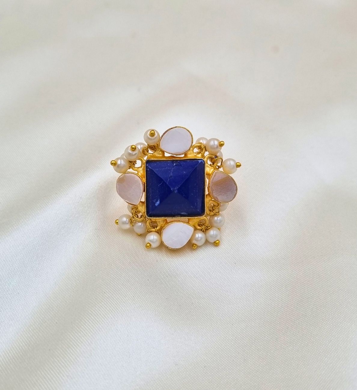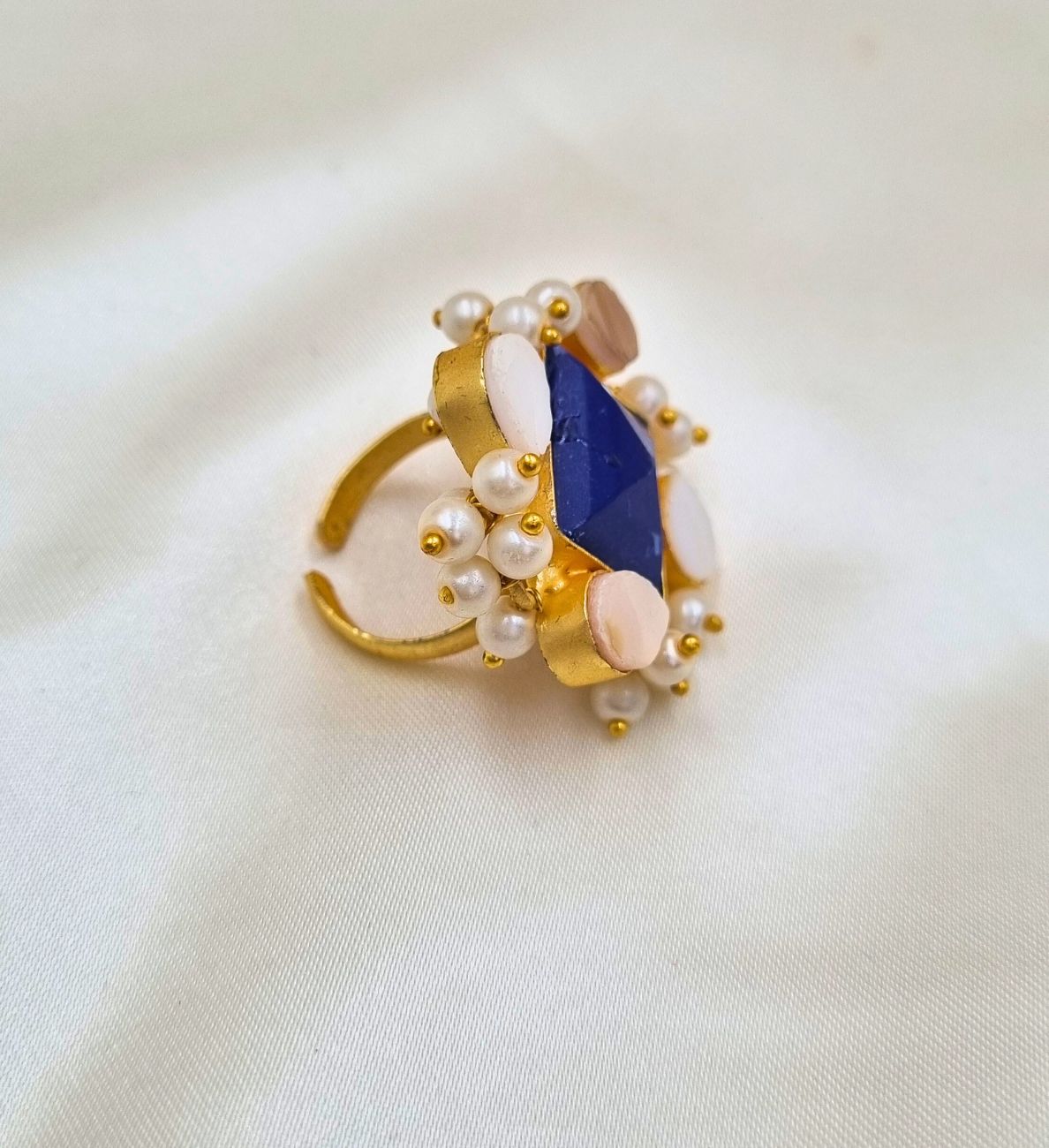 Discover timeless elegance with with exquisite natural stones and a pearl ring, perfect for adding a touch of sophistication to any ensemble.