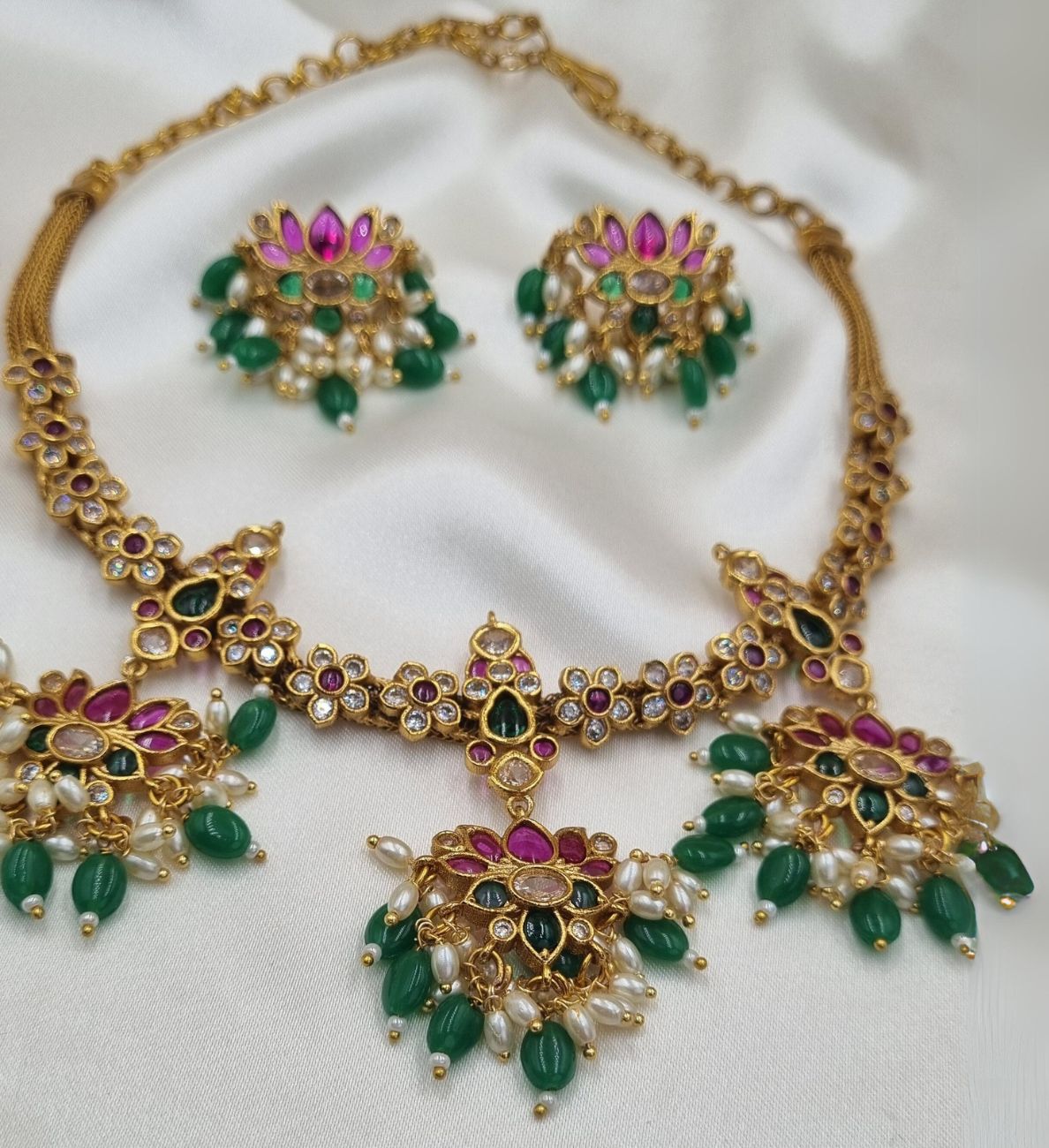 Home » Shop » Gold Legacy » Neeta W | Gold-Plated Statement Jewelry Set in Pink & Green – Thoughtful Gift for Women