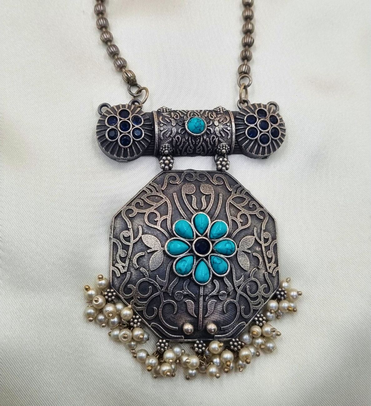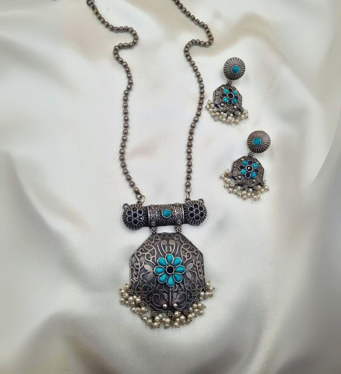 Inspired by timeless heritage, the Silver Charm collection features silver-look alike jewelry made from brass metal, beautifully crafted to resemble antique silver. Each piece is adorned with imitation stones and beads, creating a perfect blend of tradition and contemporary style.