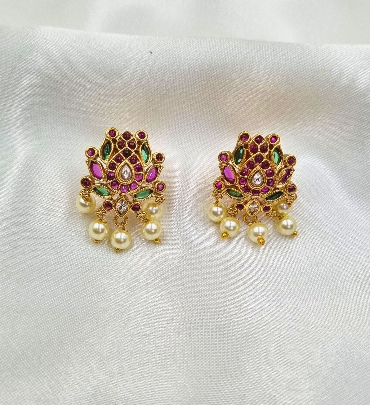 Inspired by the beauty and grace of the lotus flower, this choker set symbolizes purity and elegance. Perfect for weddings, pujas, and gifting, this piece is a timeless addition to any jewelry collection.
