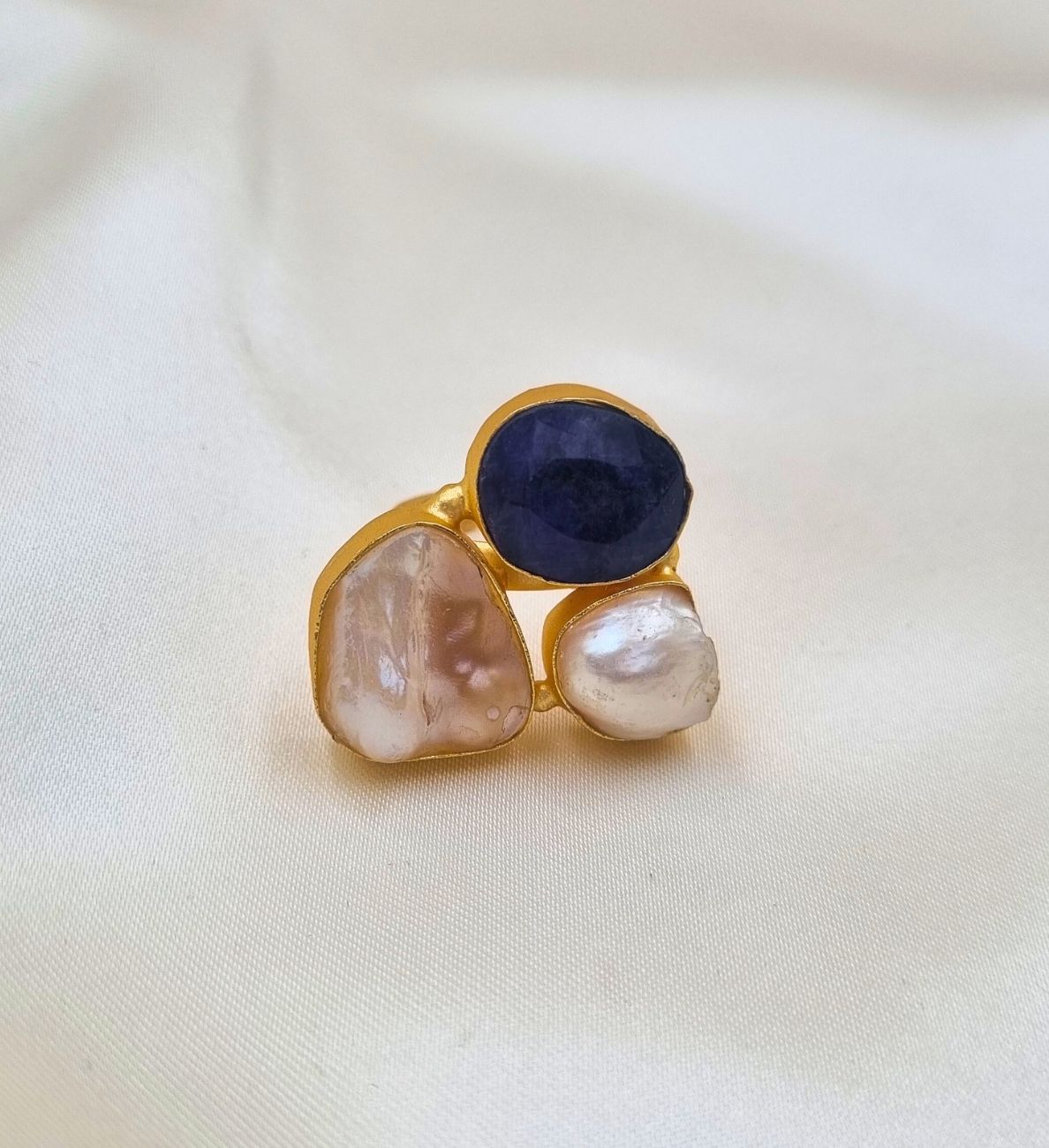 Discover timeless elegance with this exquisite natural stones and pearls ring, perfect for adding a touch of sophistication to any ensemble.