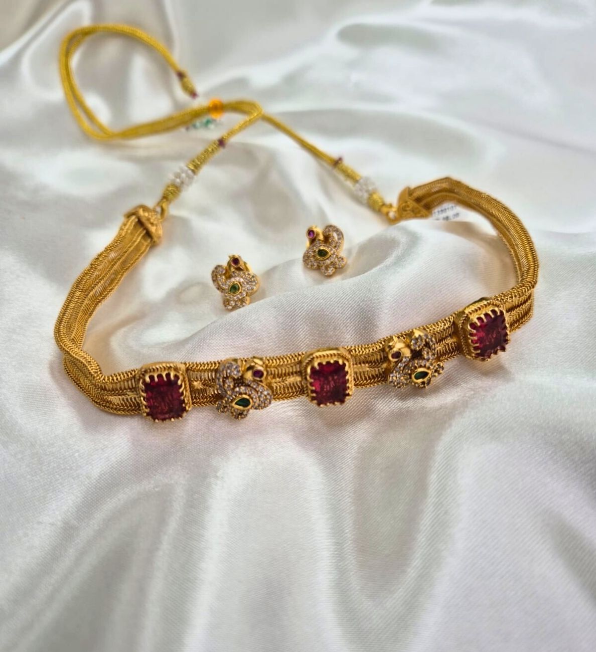 Morni2 is a beautifully crafted round choker necklace set designed to sit perfectly around the neck for a graceful and elegant look. Finished in gold plating and paired with matching earrings, this design offers a timeless traditional appeal. Perfect for festive occasions, weddings, and ethnic styling, it is ideal for those searching for round choker necklace UAE, traditional gold plated choker Dubai, and elegant ethnic choker set for women.