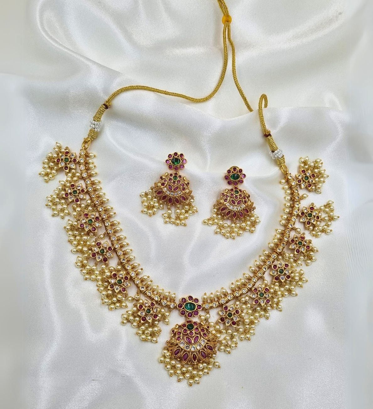 Home » Shop » Gold Legacy » Nandita (Short) Kemp Stone Necklace Set – Exquisite Handcrafted Jewelry for Women