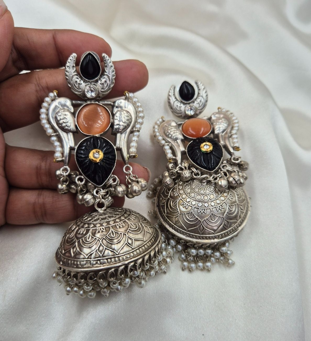 Popular among those shopping oxidized Kashmiri jhumkas Dubai or silver Kashmiri jhumka earrings UAE