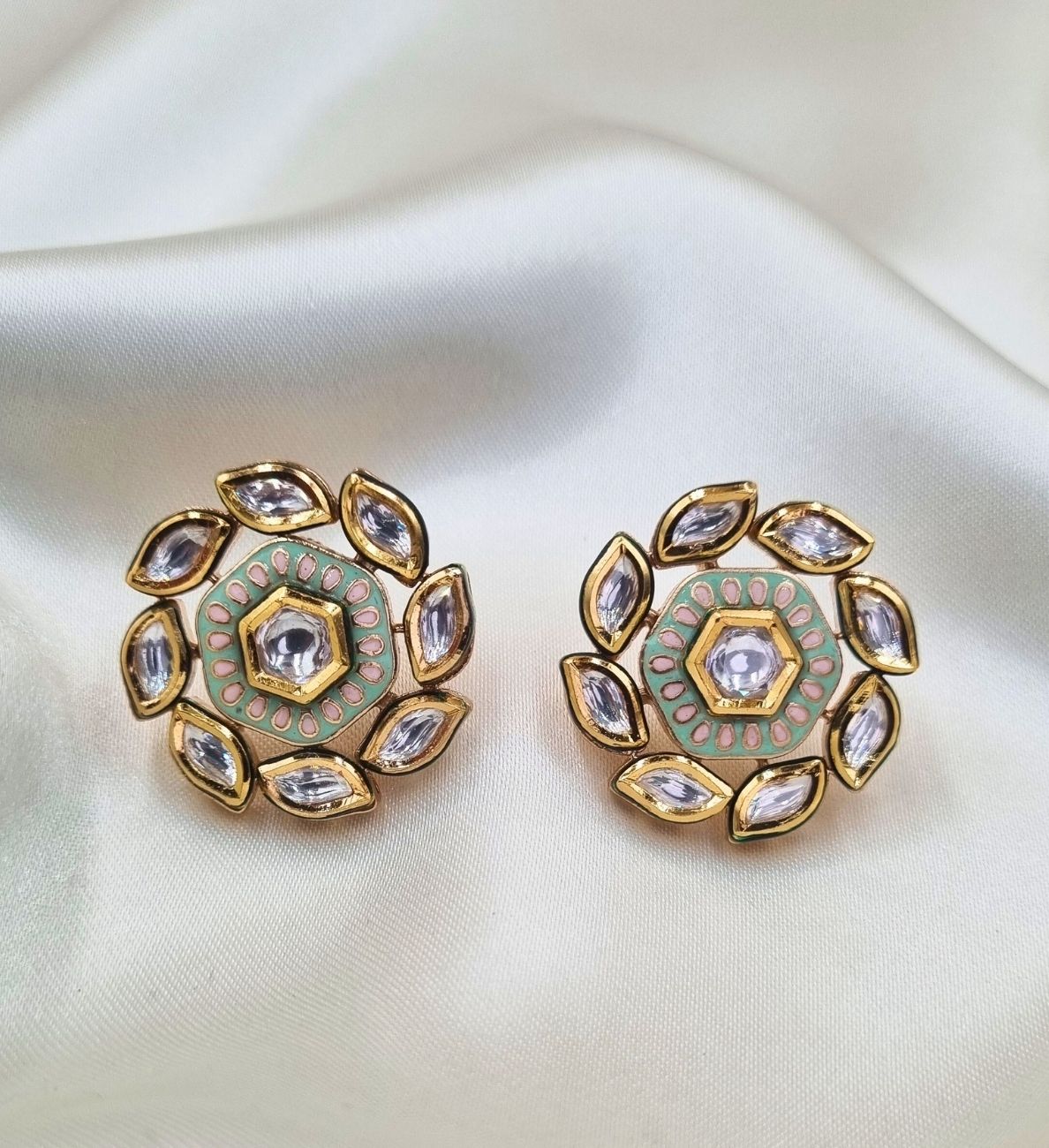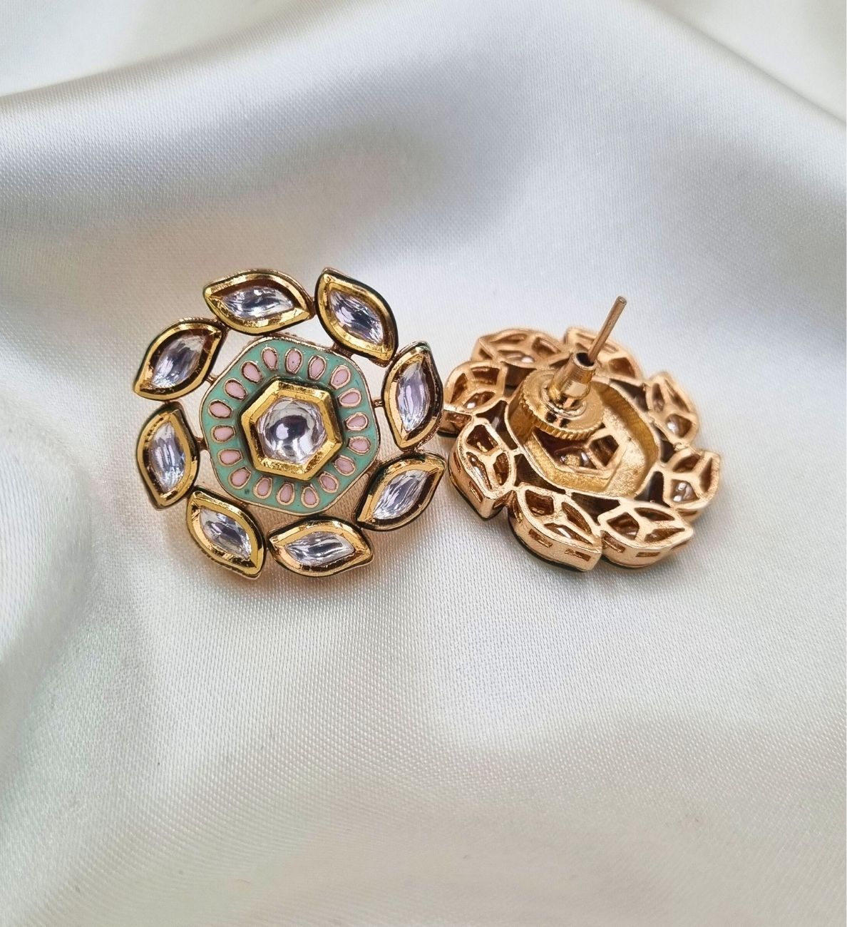 Perfect for casual outings, festive celebrations, or weddings, these premium studs blend the royal charm of Rajasthan with contemporary elegance. The intricate brass setting enhances the timeless beauty, making them a must-have accessory for any occasion.