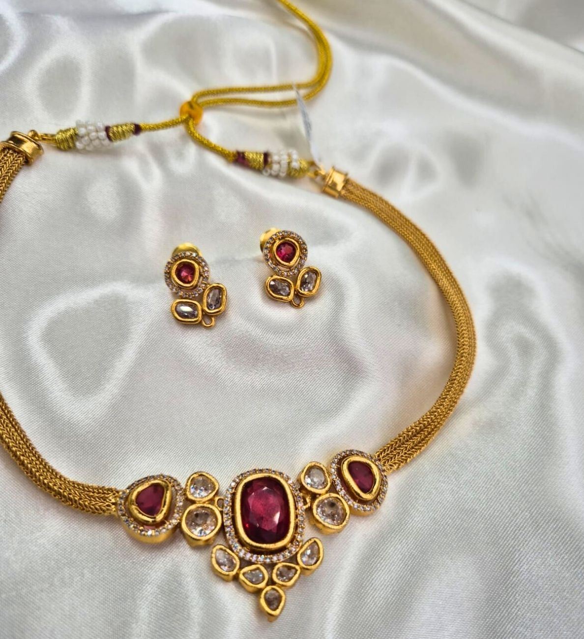 Shalini Gold Choker Women's Necklace Set with Radiant Stones – Ideal for Gifting in UAE