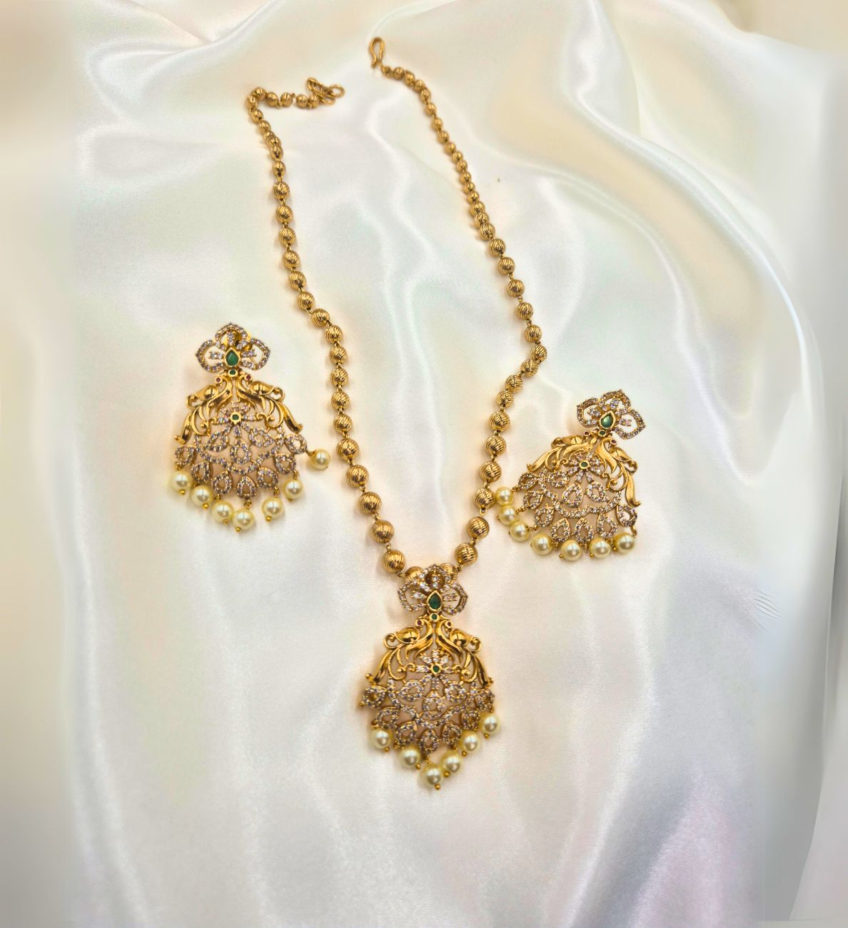 Crafted with precision and love, our jewellery is made from high-quality brass and finished with long-lasting gold plating. Adorned with vibrant Kemp stones and sparkling CZ stones, each piece is finely handcrafted by skilled artisans to reflect the richness of traditional designs with the elegance of modern craftsmanship. Designed to resemble real gold jewellery, these timeless treasures add a touch of grace and grandeur to every occasion.