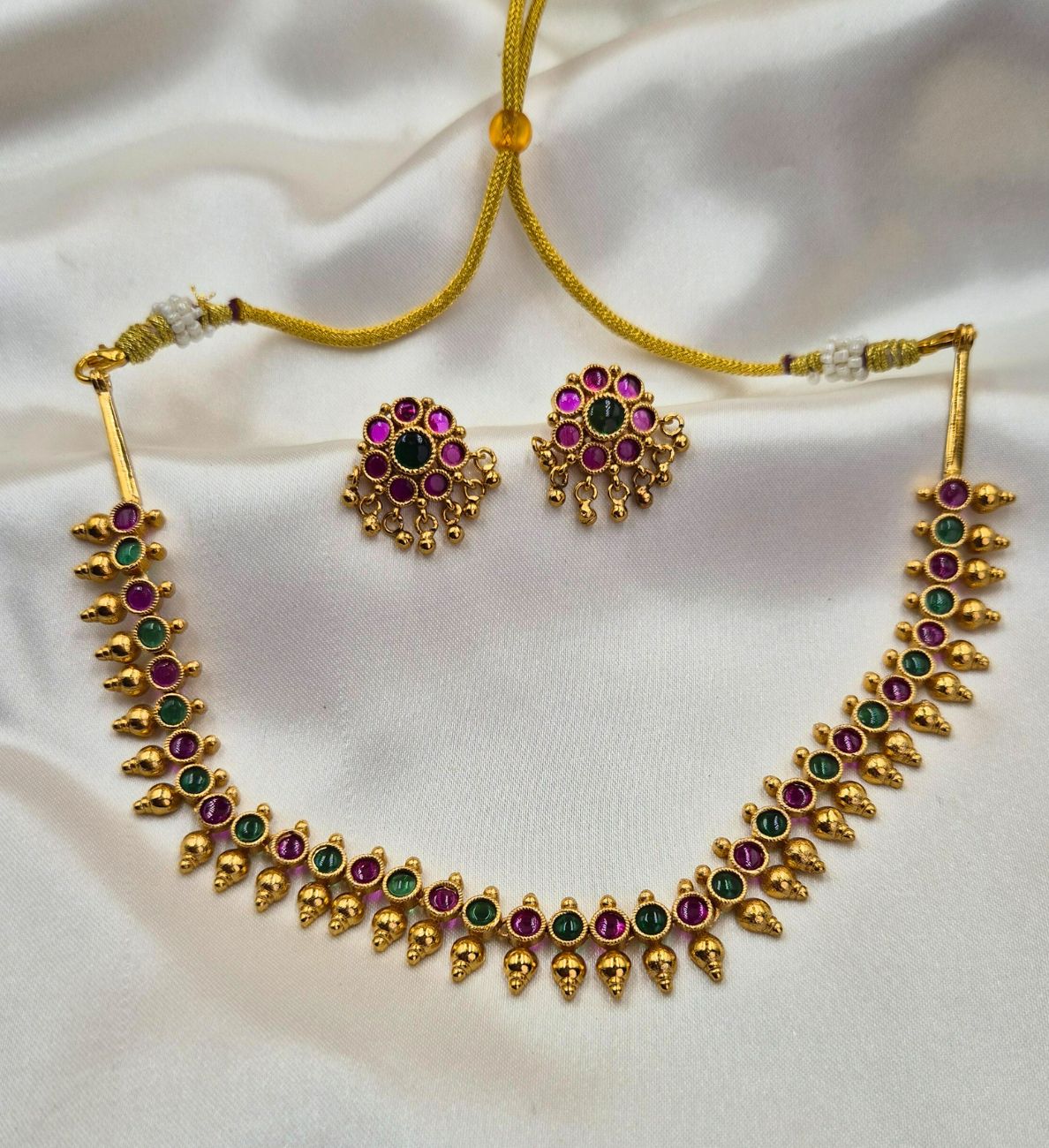 Crafted with precision and love, our jewellery is made from high-quality brass and finished with long-lasting gold plating. Adorned with vibrant Kemp stones and sparkling CZ stones, each piece is finely handcrafted by skilled artisans to reflect the richness of traditional designs with the elegance of modern craftsmanship. Designed to resemble real gold jewellery, these timeless treasures add a touch of grace and grandeur to every occasion.